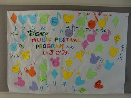 昨日も紹介した、吹奏楽団が挑戦しているある「オーディション」にかける思いをみんなで寄せ書きにしています。今週末、ビデオ撮影だそうです。