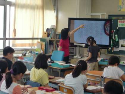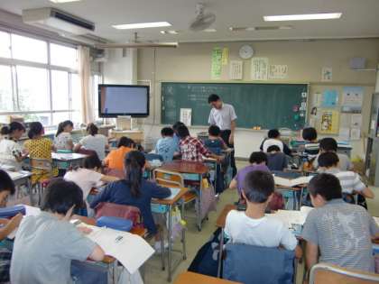 今日は1から100までの数が書かれた表に、例えば2の倍数にあたる数を丸で囲み、数の並び方に着目して、気付いたことを発表する授業でした。