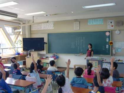 1年2組は恒例の黒板メッセージの間違い探しを、授業の最初に行いました。全部発見できたようです。