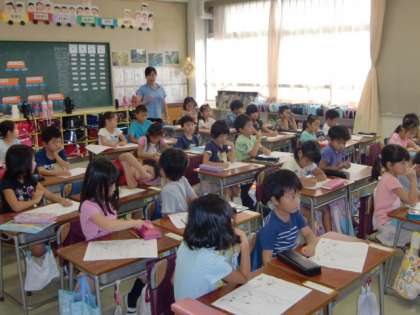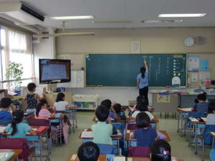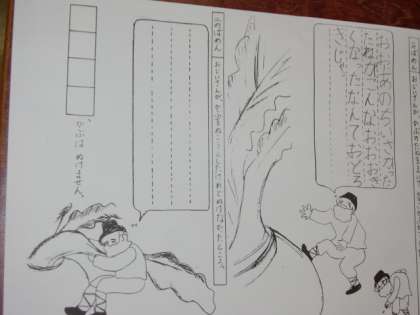 1年3組は国語。「大きなかぶ」の1場面のおじいさんの気持ちを考えています。