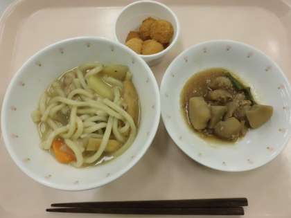 けんちんうどん・牛乳・里いもの甘辛煮・月見だんご