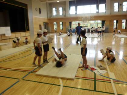 グループでアドバイスをしながら、上手に技ができるよう練習中です。