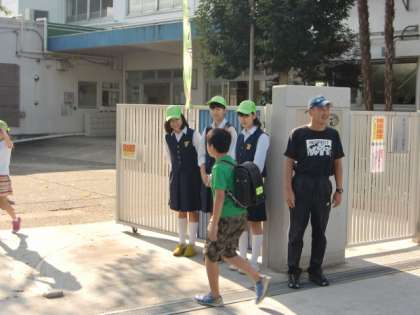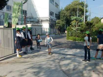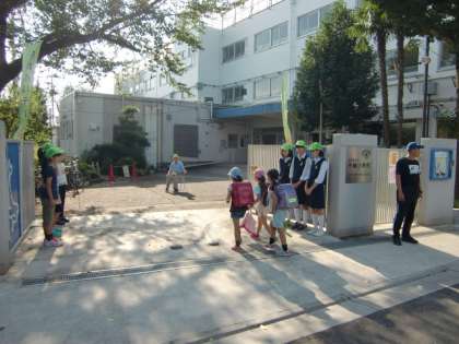 今日も、千歳中の生徒さん4名と先生が、本校児童と一緒に校門であいさつをしてくれました。
