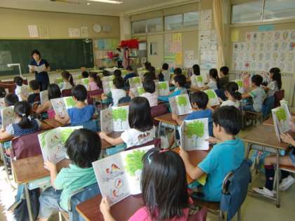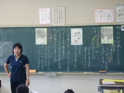 今日の道徳は「ぐみの木と小とり」。あらしの中、具合の悪いりすさんのためにお見舞いに行く小鳥さんの気持ちを考えながら、友達に親切にすることを学びました。