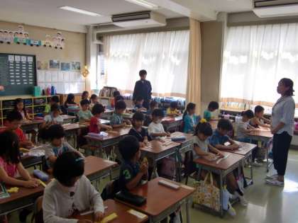 今日から3日間、上祖師谷中の2年生の男子3名が職場体験で本校に来ています。いずれも2年前まで本校に通っていました。基本的に1年生の教室で先生の仕事を手伝ったり、面倒を見たり、一緒に遊んだりする予定です。