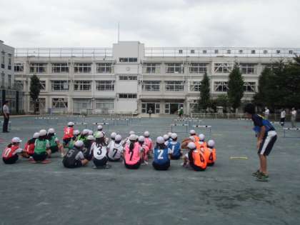 5校時は6年4組で体育の研究授業を行いました。単元は「ハードル走」。