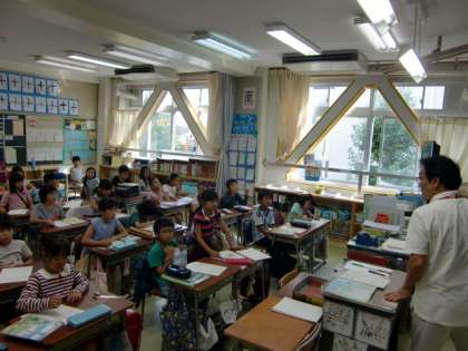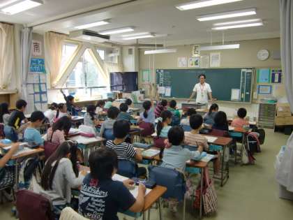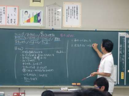 今日のテーマは「お手伝い90日」。授業は教師自身のエピソードから始まり、家族のために目標を立て、継続して取り組むために、どんな工夫をしているか、活発な意見が出されました。