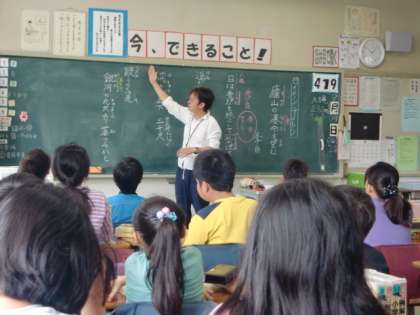 今日は李白の漢詩「廬山の瀑布を望む」の学習でした。題名や一連一連から、どんなイメージが浮かぶのか、積極的に発言する様子が見られました。