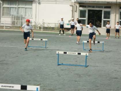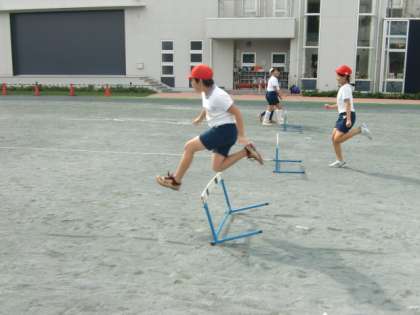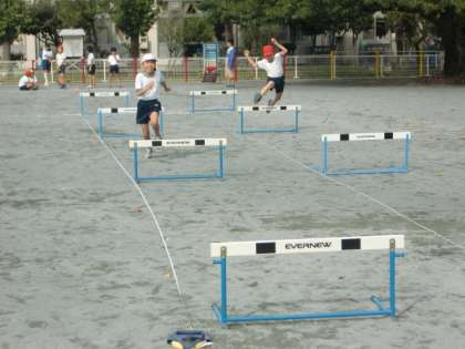 ハードル走の学習です。タイムを計って前回と比べて向上したかどうかを確かめています。