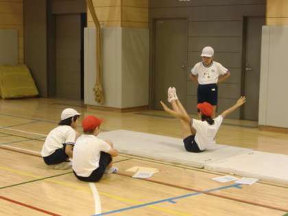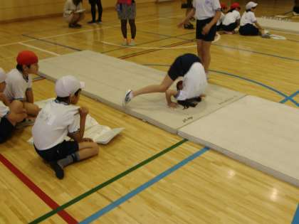10月15日(水)5校時に4年1組で校内研究授業を行いました。単元は「マット運動」。今まで習った技を組み合わせて練習する様子を、子どもたちが互いに見あってさらに磨きをかける授業でした。講師の青鹿和裕先生からは、マットを含めた器械運動を学習することの意義や、指導のポイントなどについて的確な助言をいただきました。
