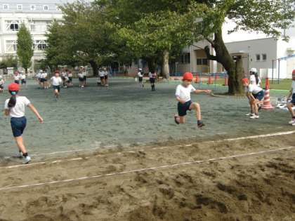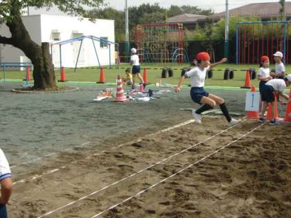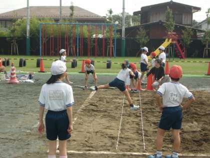 こちらは「走り幅跳び」の学習です。強く踏み切ることを意識して練習しています。