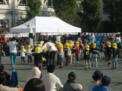 10月25日(土)、本校校庭で成城つくしんぼ保育園の「つくしんぼまつり(運動会)」が行われました。小学校の運動会とはまた違ったかわいらしさを感じました。写真は開会式とラジオ体操の様子です。