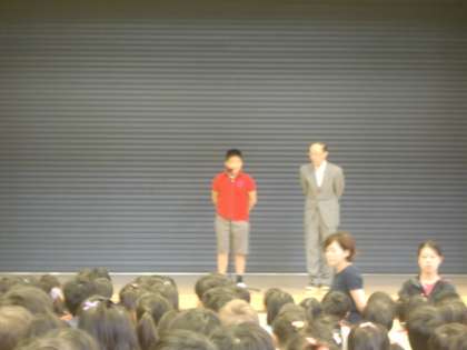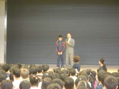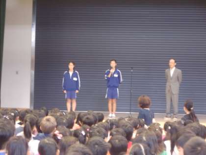 今日は、区の代表としてオーストラリアに派遣される5年生、先日の連合運動会で活躍した6年生、全員で協力して雨乞山登山を成功させた5年生の紹介がありました。続いて、今日から3日間職場体験をする千歳中2年生の自己紹介がありました。しっかりとあいさつする姿は頼もしかったです。
