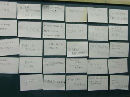 生活の中にある広告のキャッチコピーを参考にして、オリジナルのコピーを考える学習です。