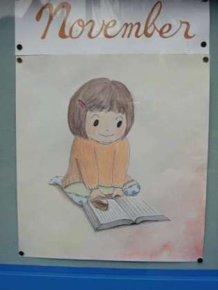 今月も新しい英語の月の名前とイラストが掲示されています。