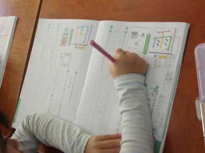 今日の漢字は「雨」。1年生で習う漢字80字のうち、38番目の字だそうです。