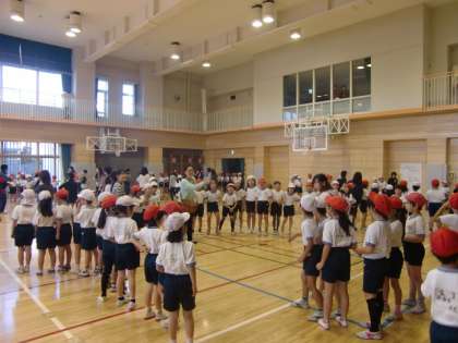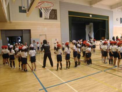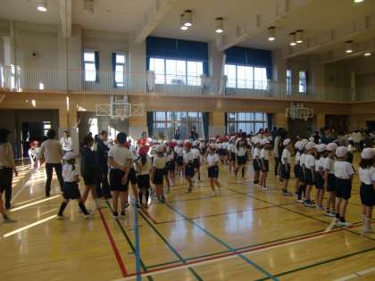 体育館では1・2年生が練習をしています。