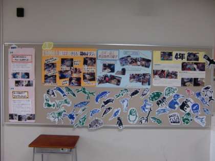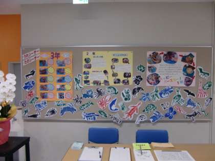 体育館入口と出口付近の掲示板には、作品の制作過程が掲示されています。