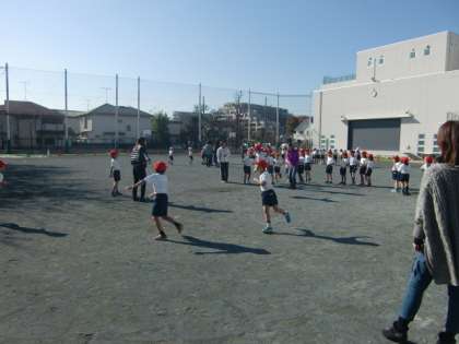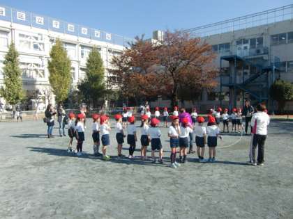 校庭で長縄の練習です。保護者の方にもお手伝いや応援をしていただいています。最初のうち、入れなかった子が、今では上手に跳べるようになりました。「継続は力なり」ですね。