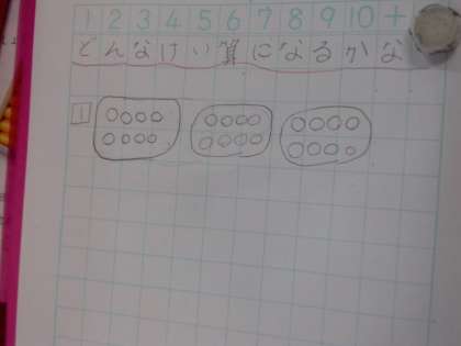 文章を読んで何算で答えを求めるのか考え、問題に合った図をノートにかく学習です。