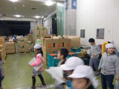最後にせりの体験をしました。キャベツが10000円というのは高すぎですね。毎週土曜日は7時から仲卸で新鮮な野菜や果物を箱で購入できるそうです。ご家族で是非どうぞ。