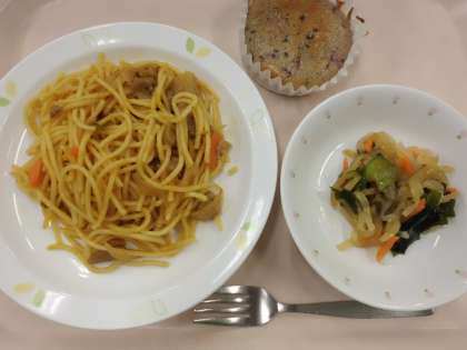 スパゲティナポリタン・牛乳・わかめサラダ・ブルーベリーケーキ