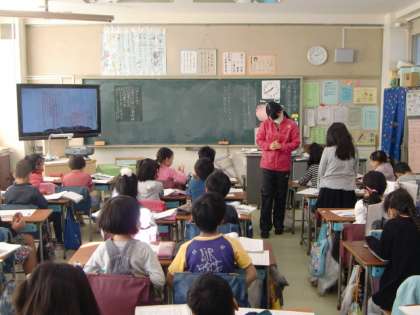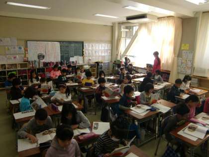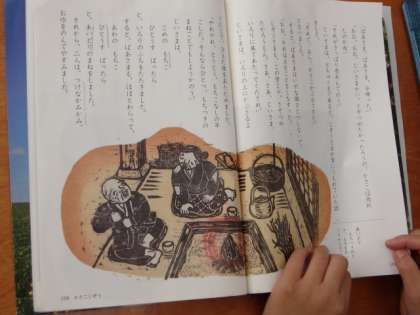 「かさこじぞう」の学習です。登場人物の気持ちを考え、発表した後は、役割に分かれて音読をしています。