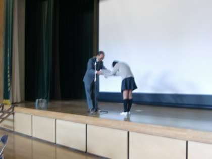 今日はまずピアノのコンクールで優秀な成績をおさめた児童の紹介がありました。