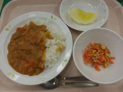 ハヤシライス・牛乳・にんじんサラダ・くだもの