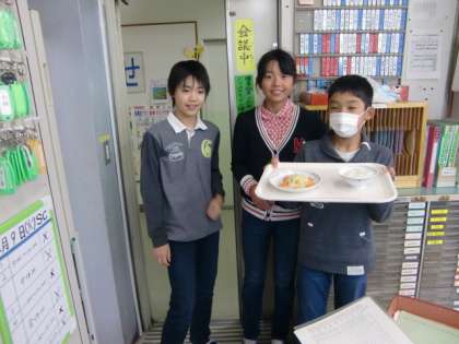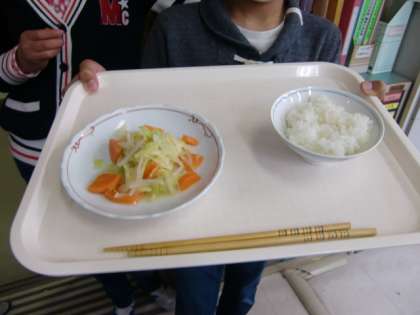 昨日、今日と5年生は家庭科の学習で調理実習をしています。二日続けてご飯と野菜サラダのおすそわけが校長室と職員室に届きました。おいしかったです。どうもありがとう!