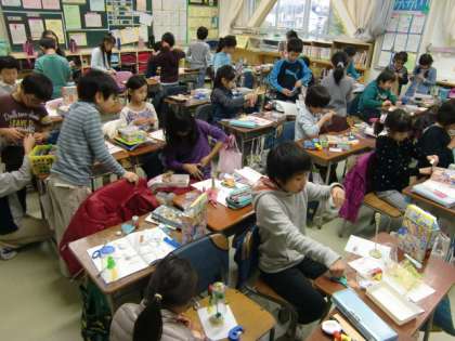 こちらも「明かりをつけよう」ですが、まとめでクリスマスツリー作りをしています。