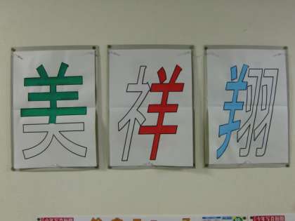 昨日の始業式で、校長先生が紹介した「羊」が付く漢字です。校長室前の廊下に掲示されています。色にも理由があるのですが、さて、何だったでしょうか?