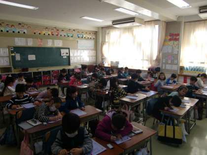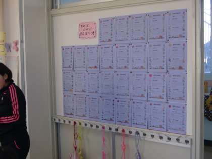 気持ちを新たに3学期のめあてを立てています。「あいさつがち」ってなんでしょう?