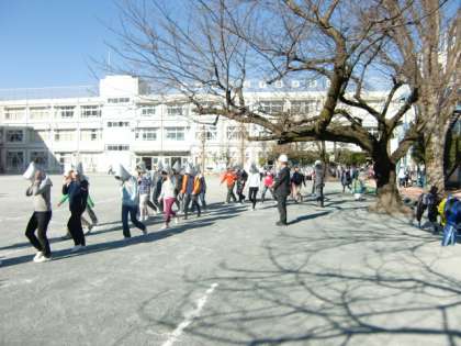 今月は、5校時に入ってすぐ、主事室からの出火を想定して避難訓練を行いました。静かに整然と避難することができました。