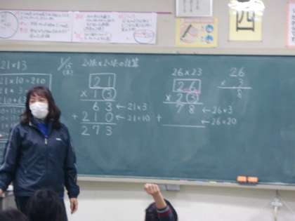 2けた×2けたのかけ算の筆算のしかたを学習しています。