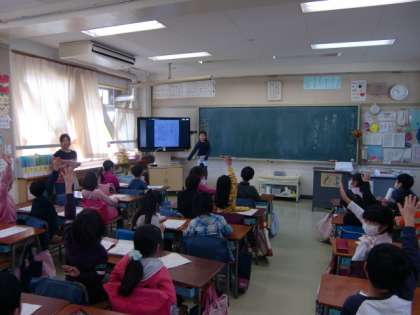 「なぞなぞ大会」。自分で考えたなぞなぞを、みんなの前で発表しています。