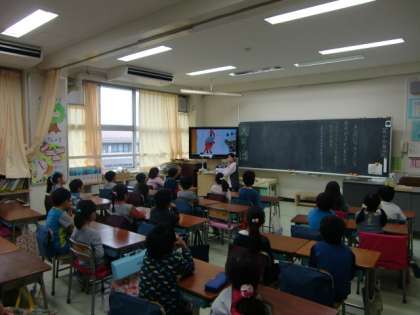 「きょだいなきょだいな」の発表会です。1組はそれが終わって絵本の読み聞かせです。