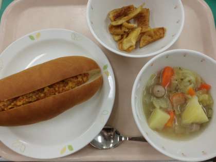 チリビーンズサンド・牛乳・ポトフ・スパイシーポテト