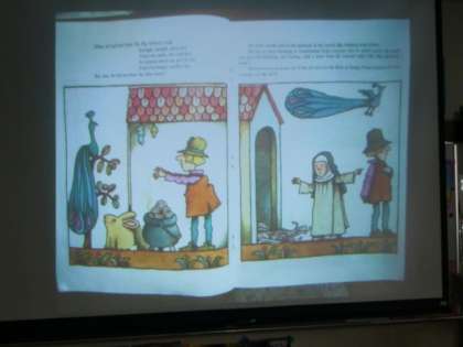 2月10日(火)10時15分から新BOP室で行いました。今回は「まほうつかいのノナばあさん」という英語の絵本でした。パスタがどんどん出てきて、さぁ大変!