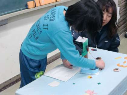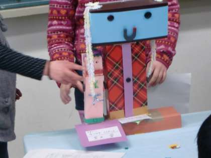 「じしゃくのはたらき」。磁石の性質を利用して作ったおもちゃの発表会です。どんな性質を使ったのかをちゃんと説明しています。