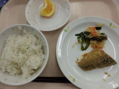 ごはん・牛乳・魚のごまだれかけ・和風サラダ・くだもの