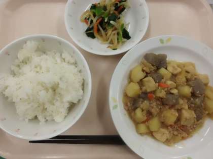 ごはん・牛乳・じゃがいものそぼろ煮・青菜のおひたし