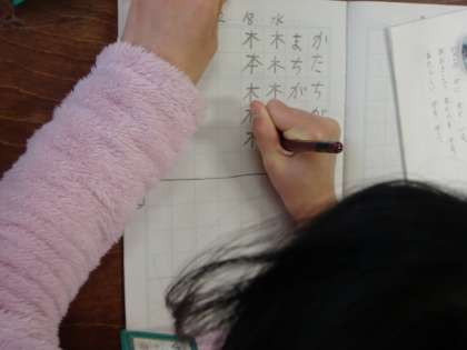新しい漢字「草」を学習した後、似た形の漢字を探す問題をみんなで解き、さらに自分で問題を作りました。
