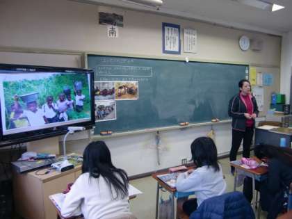「ユニセフ」についての学習です。何を目的とし、どんな活動をしているのかについて学びました。発言した子が次の発言者を指名する「つなぐ」授業が特徴です。