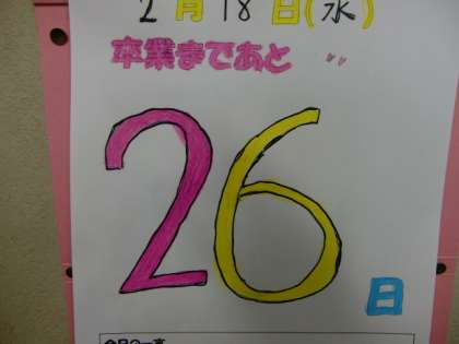 教室のカウントダウンカレンダーは「卒業まで26日」です。