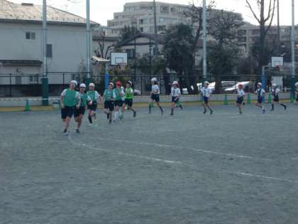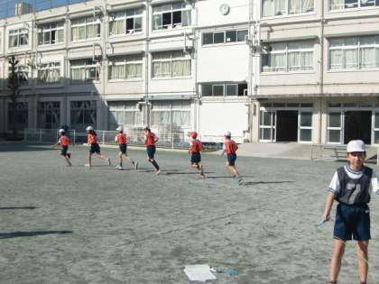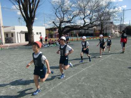 「グループランニング」。グループで協力しながら長い距離を走る学習です。