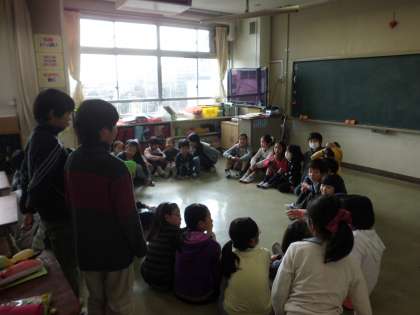 給食後の時間には、今年度最後のたてわり遊びが行われました。
