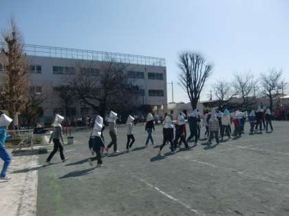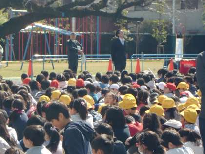 今月の避難訓練は1年間のまとめ。中休みの地震を想定し、教職員が校内を分担して児童の安否確認を行う訓練でした。