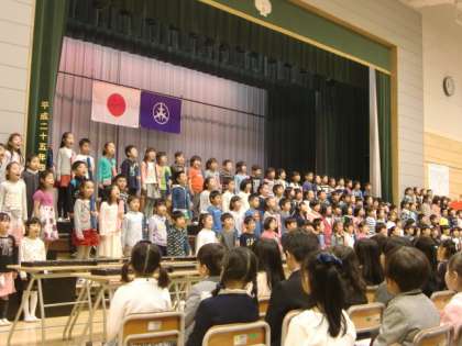 6年生の代表の言葉、2年生の歓迎のことばと演技がありました。これで千歳小学校の児童数は823名になります。