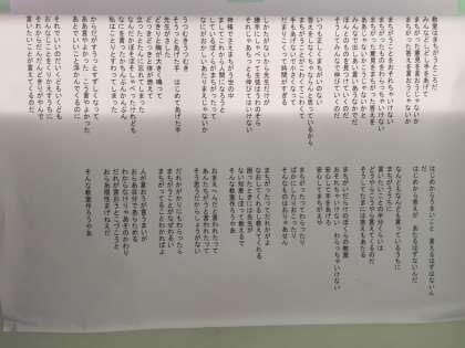 昨日の全校朝会で校長先生が紹介した詩が掲示されています。